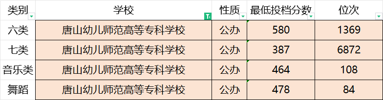 唐山幼儿师范高等专科学校2023年录取分数