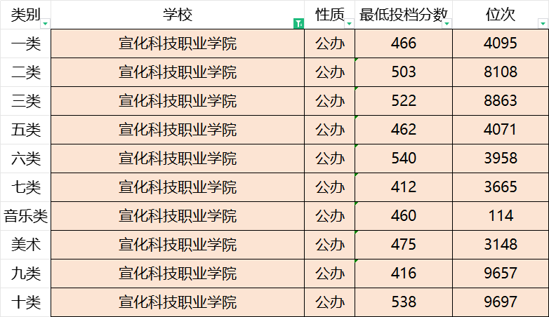 宣化科技职业学院2023年录取分数