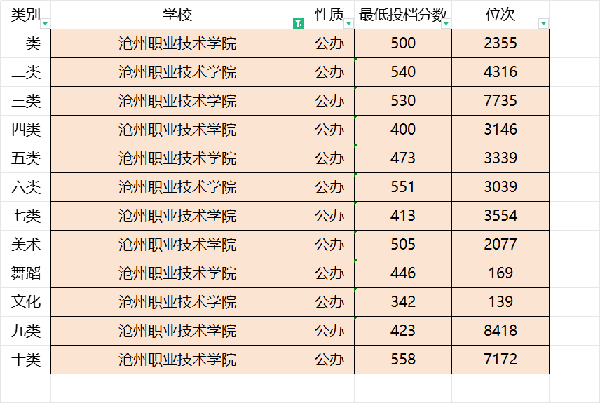 沧州职业技术学院2023年录取分数