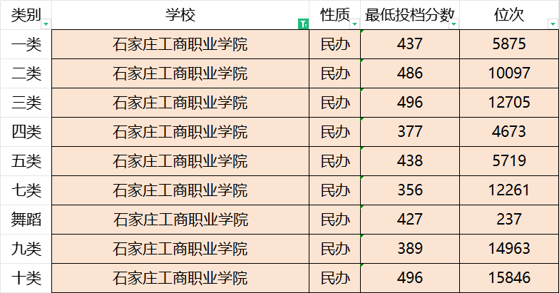石家庄工商职业学院2023年录取分数