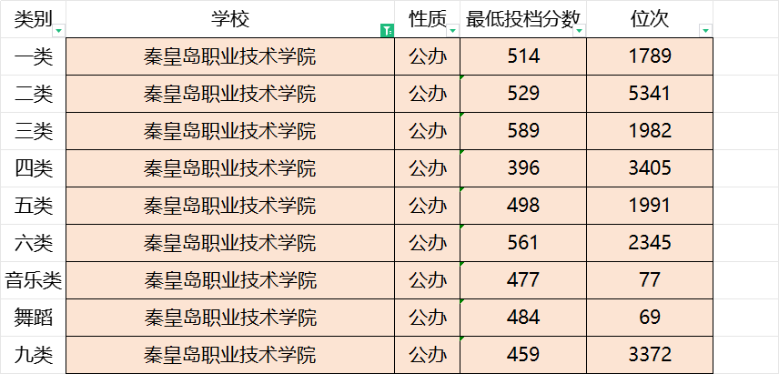 秦皇岛职业技术学院2023年录取分数