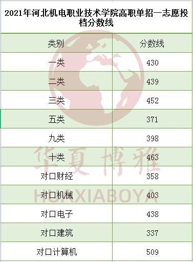 2021年河北机电职业技术学院高职单招一志愿投档分数线
