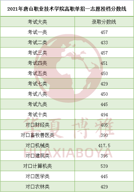 2021年唐山职业技术学院高职单招一志愿投档分数线
