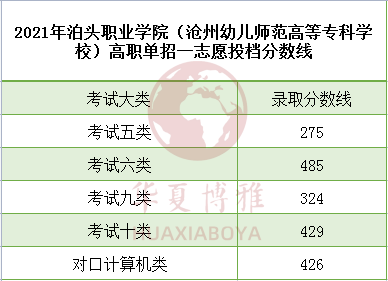 2021年沧州幼儿师范高等专科学校(泊头职业学院)高职单招一志愿投档分数线
