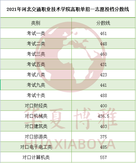 2021年河北交通职业技术学院高职单招一志愿投档分数线